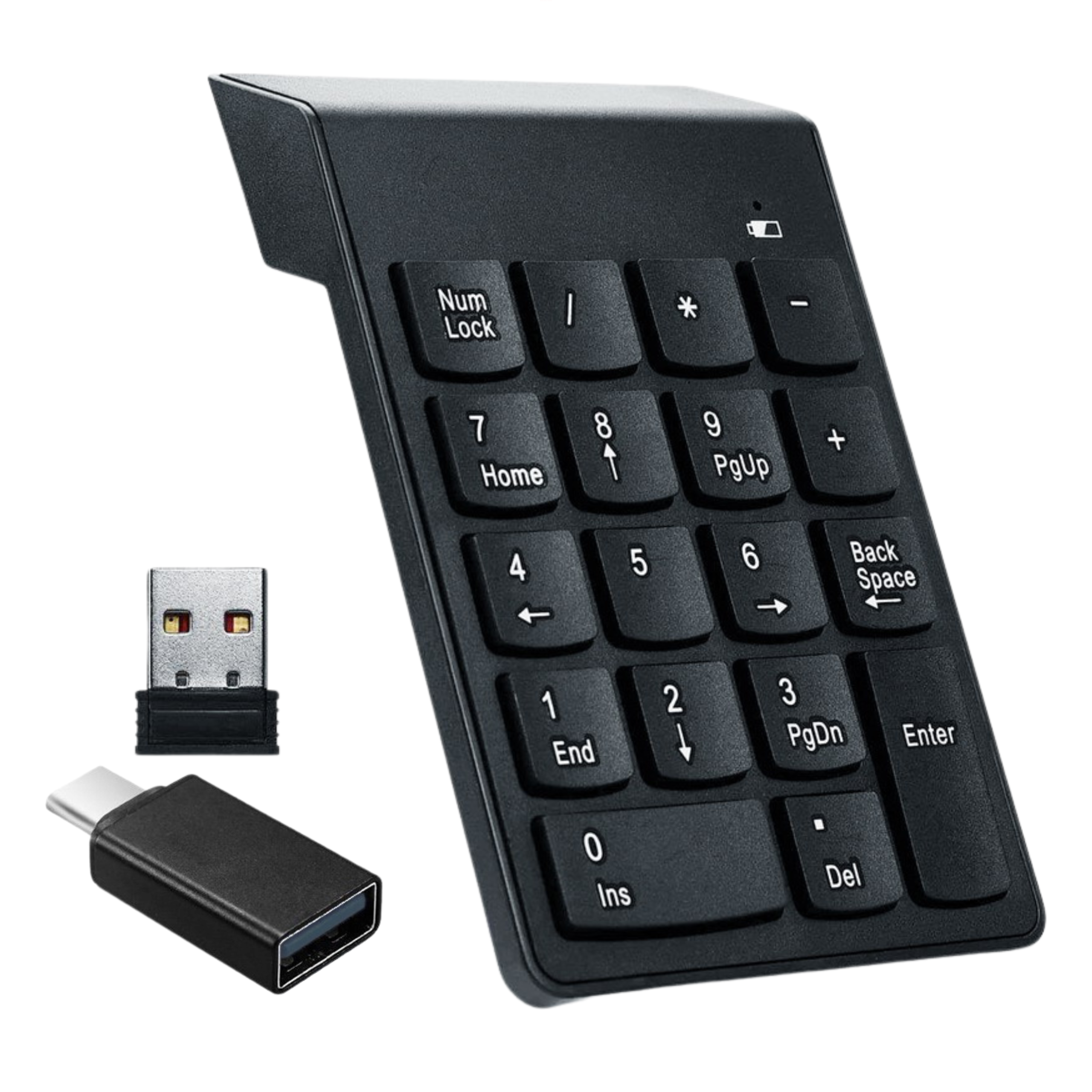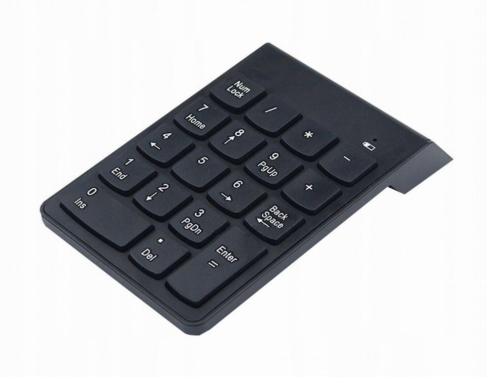 ✅ Uniwersalna, bezprzewodowa klawiatura numeryczna o standardowym rozkładzie klawiszy, podłączana przez port USB.