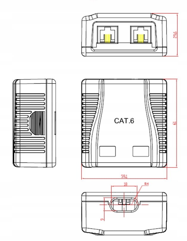 - Kategoria: 2x RJ45 8P8C / UTP CAT6 / KRONE