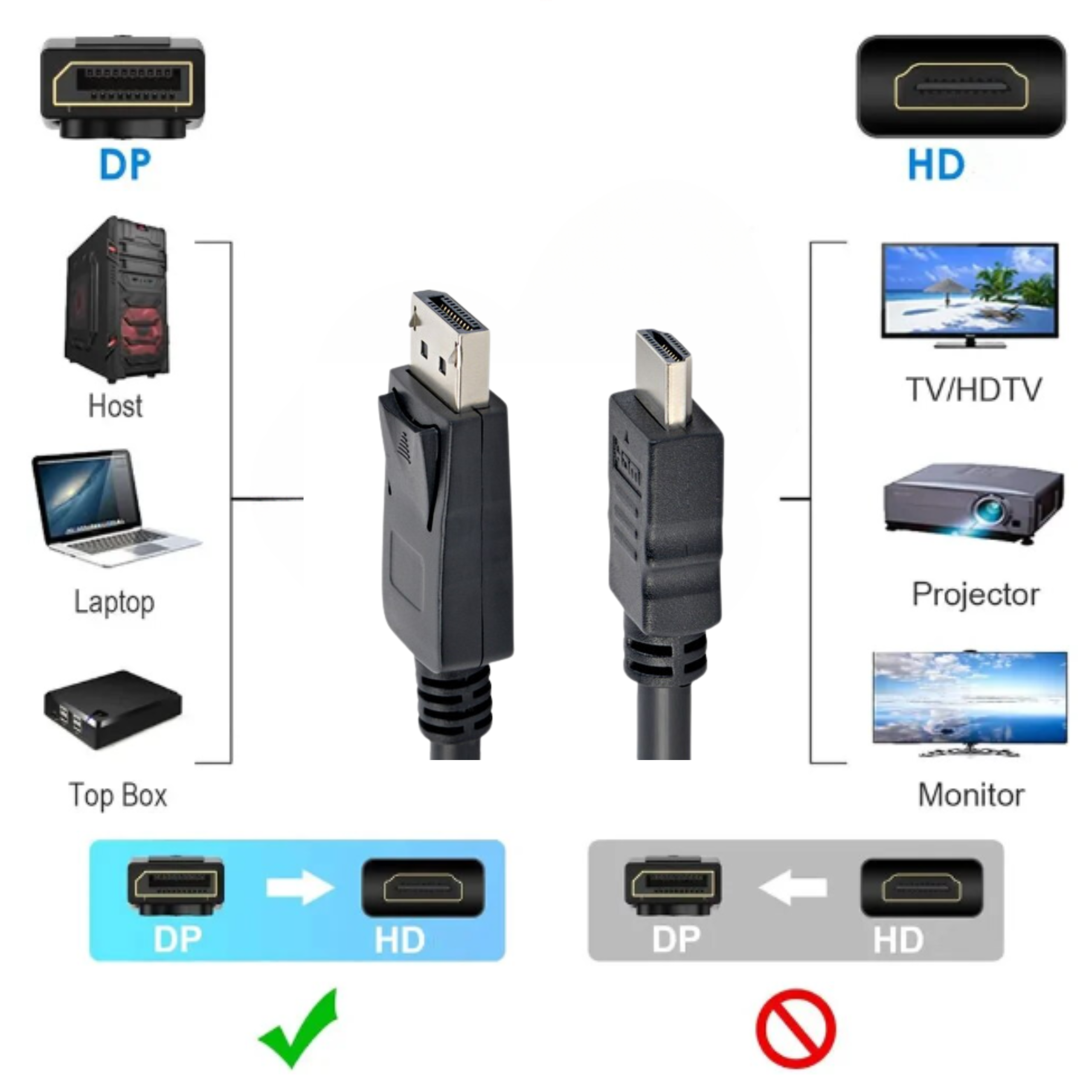 - UWAGA !!! Kabel jedno-kierunkowy konwertuje sygnał z nadajnika DisplayPort do odbiornika HDMI !!!