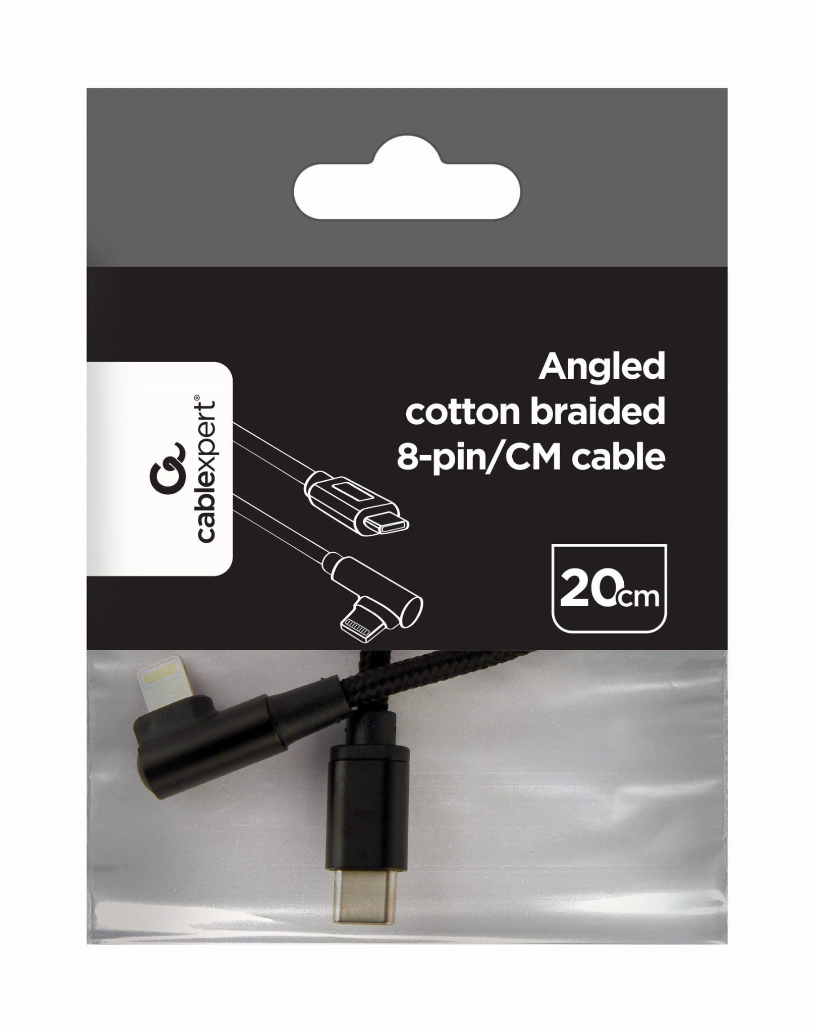 GEMBIRD KABEL KĄTOWY USB-C DO 8-PIN 0.2M CZARNY OPLOT