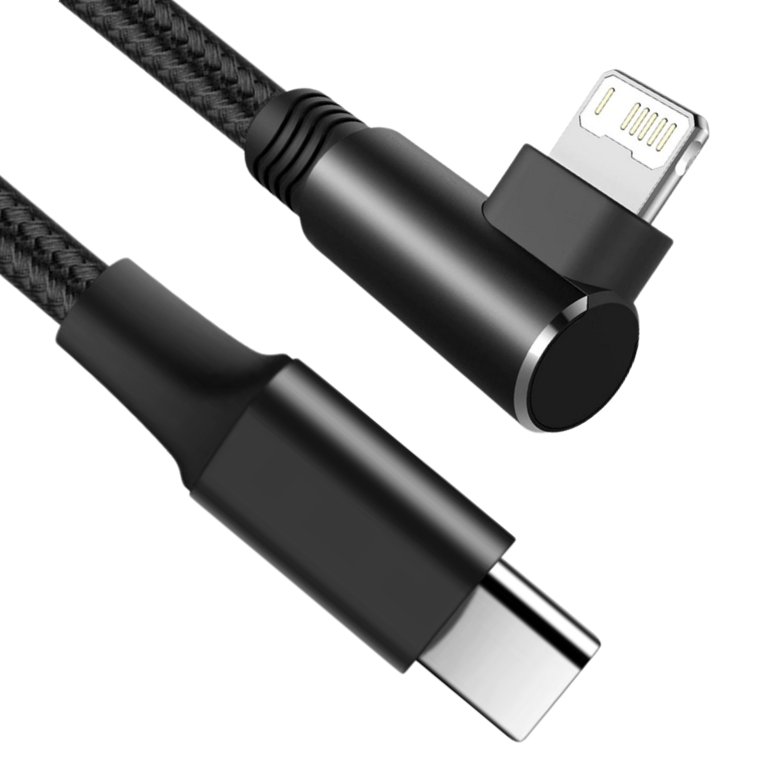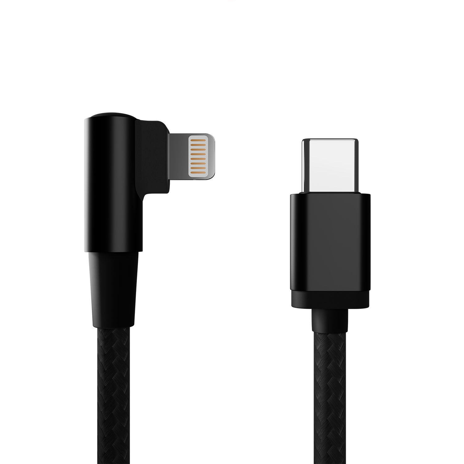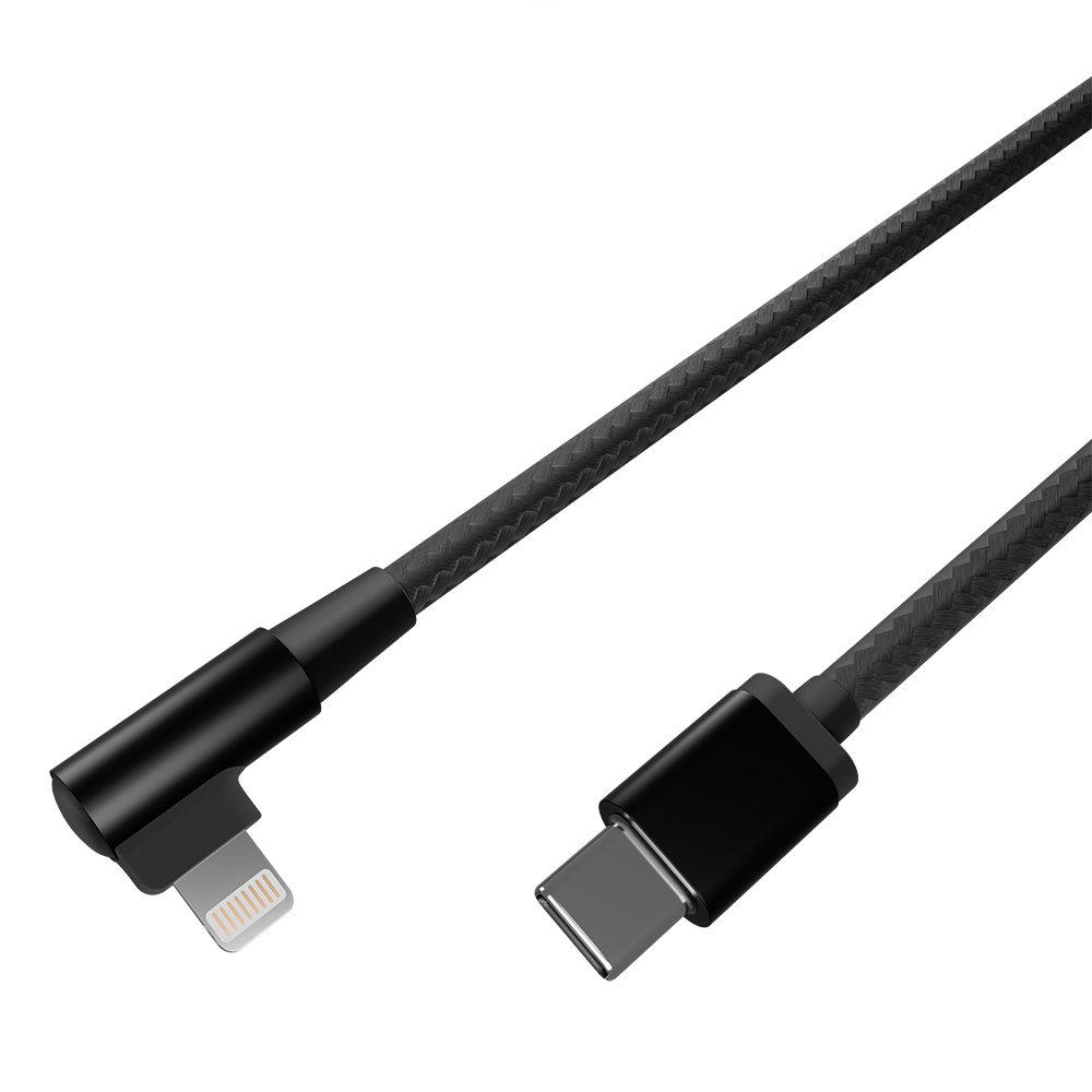 Kabel USB-C do Lightning 8-pin kątowy 0,2m – 2.1A, czarny w oplocie