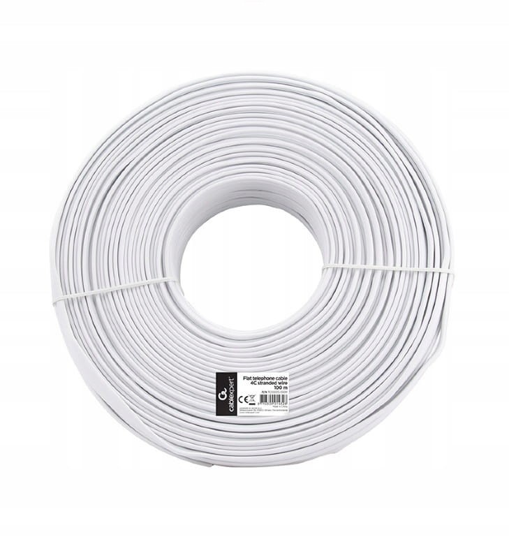 Kabel telefoniczny 100M 4-ŻYLY x 0,25mm PŁASKI BIAŁY (TC1000S).