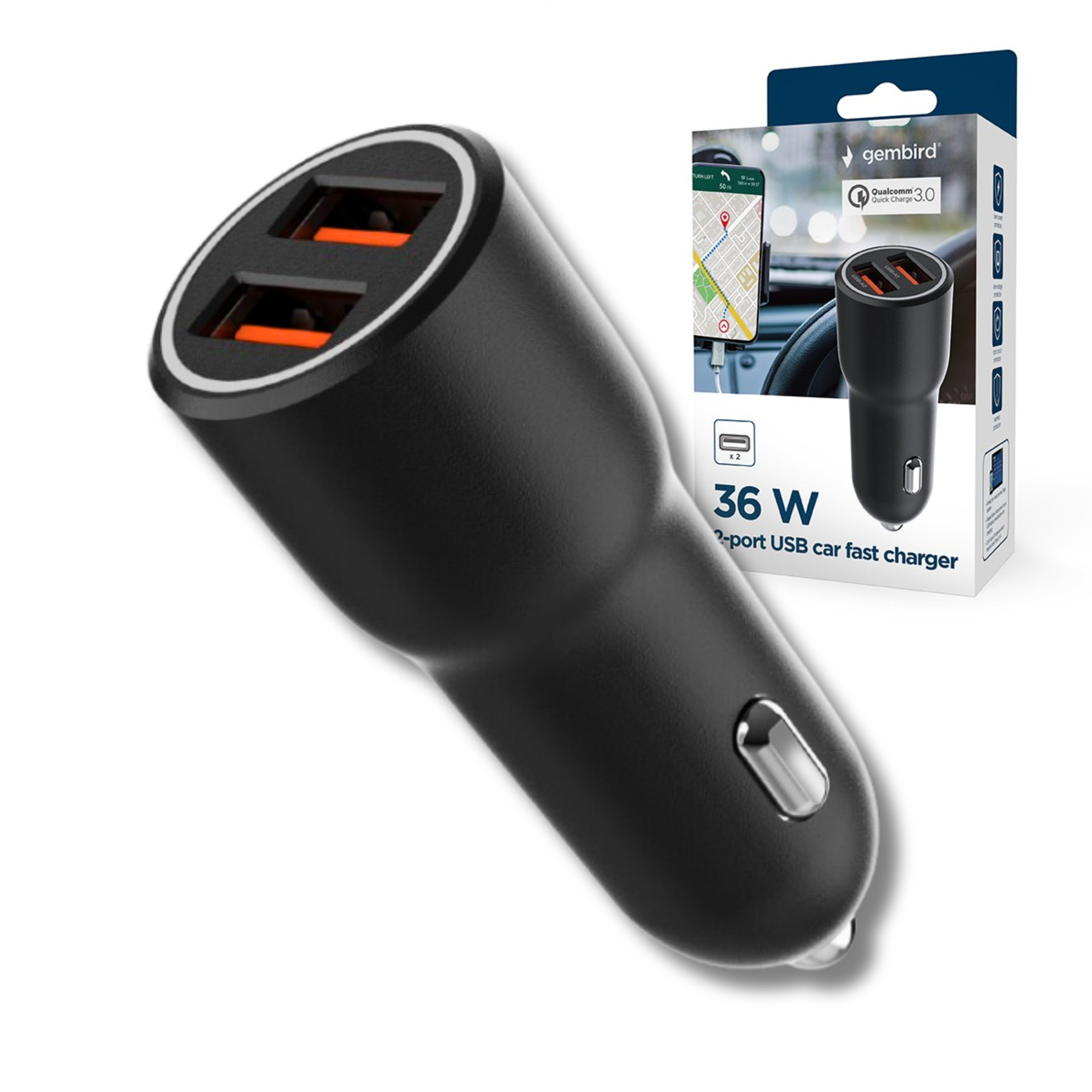 Szybka ładowarka samochodowa 2 xUSB QC 3.0 mocy 36W to niezastąpione narzędzie dla każdego kierowcy, który ceni sobie wygodę i efektywność.