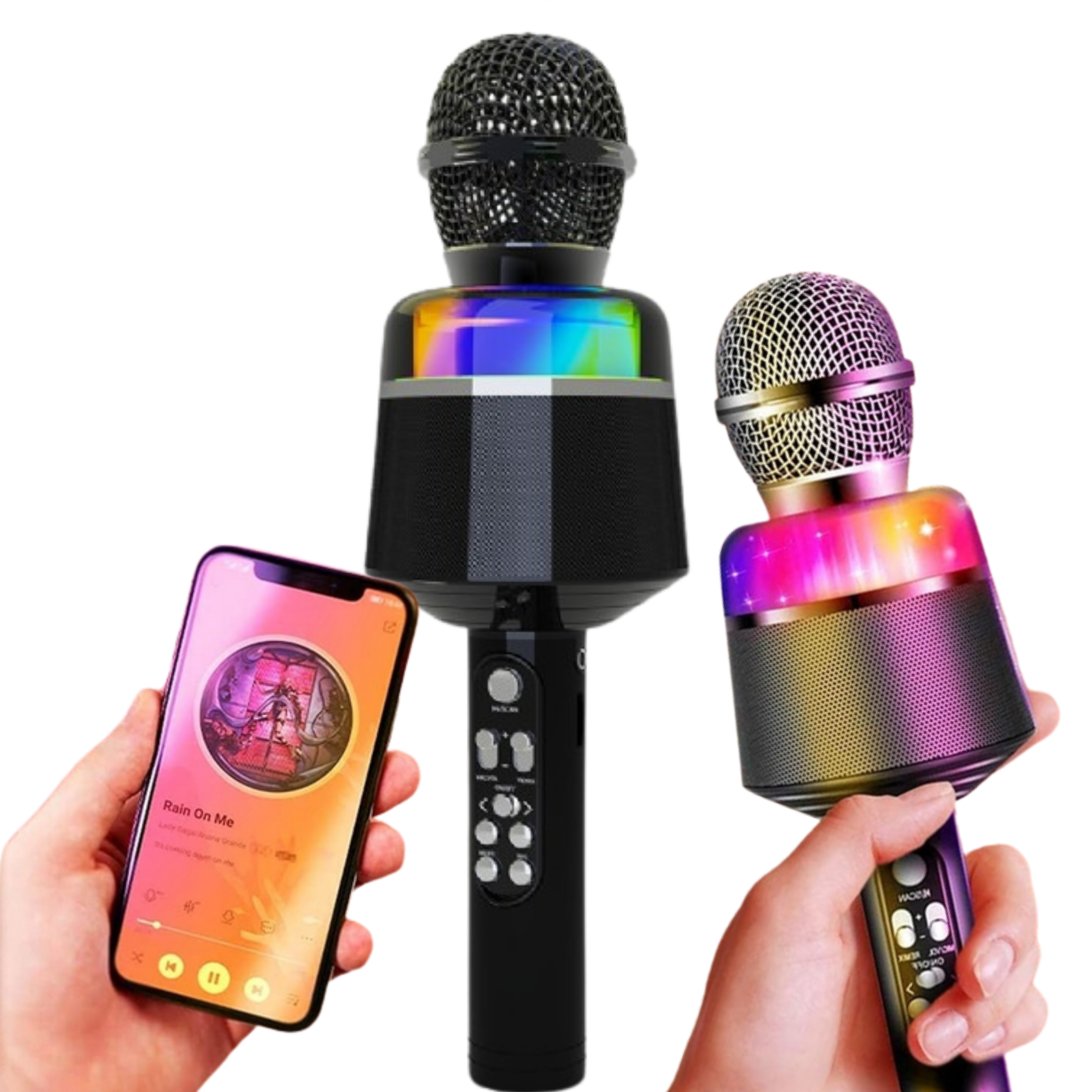 Zamień każdą chwilę w muzyczne show! Bezprzewodowy mikrofon karaoke MICBT-01-BK to idealny gadżet dla dzieci i dorosłych, który sprawdzi się zarówno podczas domowych imprez, urodzin, jak i spotkań ze znajomymi. To nie tylko mikrofon – to przenośna stacja karaoke z głośnikiem, efektami świetlnymi LED i możliwością odtwarzania muzyki z różnych źródeł.