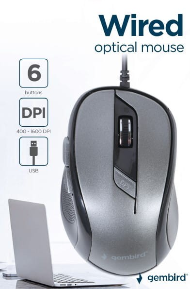 Przewodowa mysz komputerowa optyczna o rozdzielczości 1600 DPI to niezawodne i funkcjonalne urządzenie, idealne zarówno do codziennego użytku biurowego, jak i do domowych zastosowań.