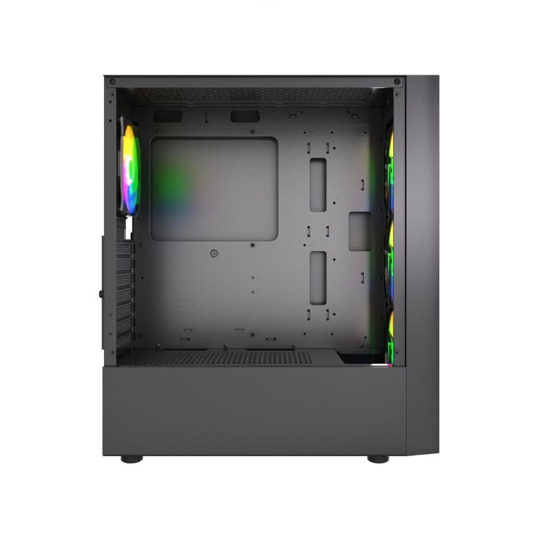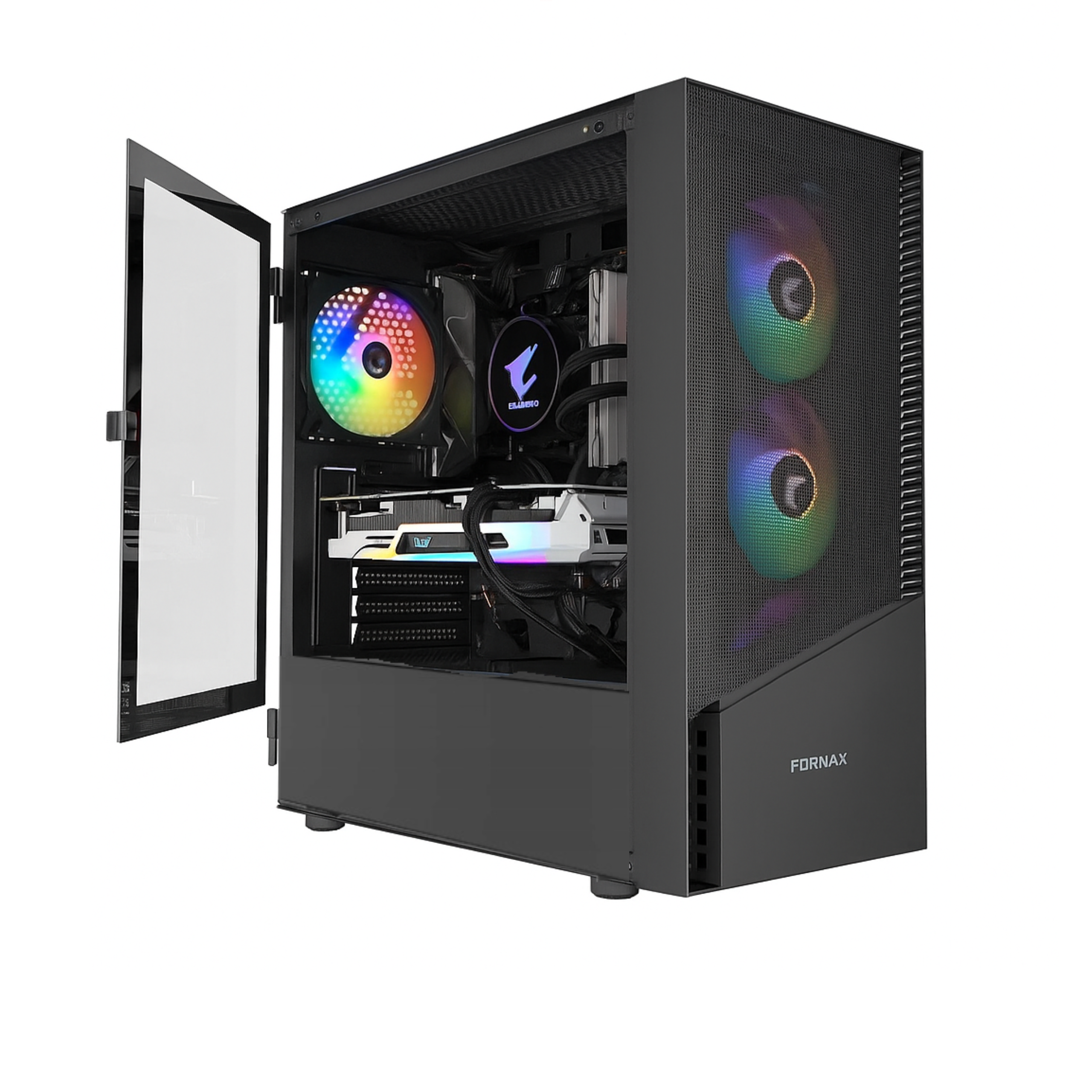 Obudowa Fornax 4300 wyposażona jest w cztery wentylatory ARGB (dwa z przodu, jeden z tyłu, opcjonalnie dwa na górze), które oferują wyjątkowy efekt wizualny. Dzięki podświetleniu RGB możesz dostosować wygląd obudowy do swojego gustu, co pozwala na stworzenie unikalnej atmosfery w trakcie grania. Wentylatory są również sterowane przez MasterFan, co umożliwia pełną kontrolę nad efektem świetlnym i wydajnością chłodzenia.
