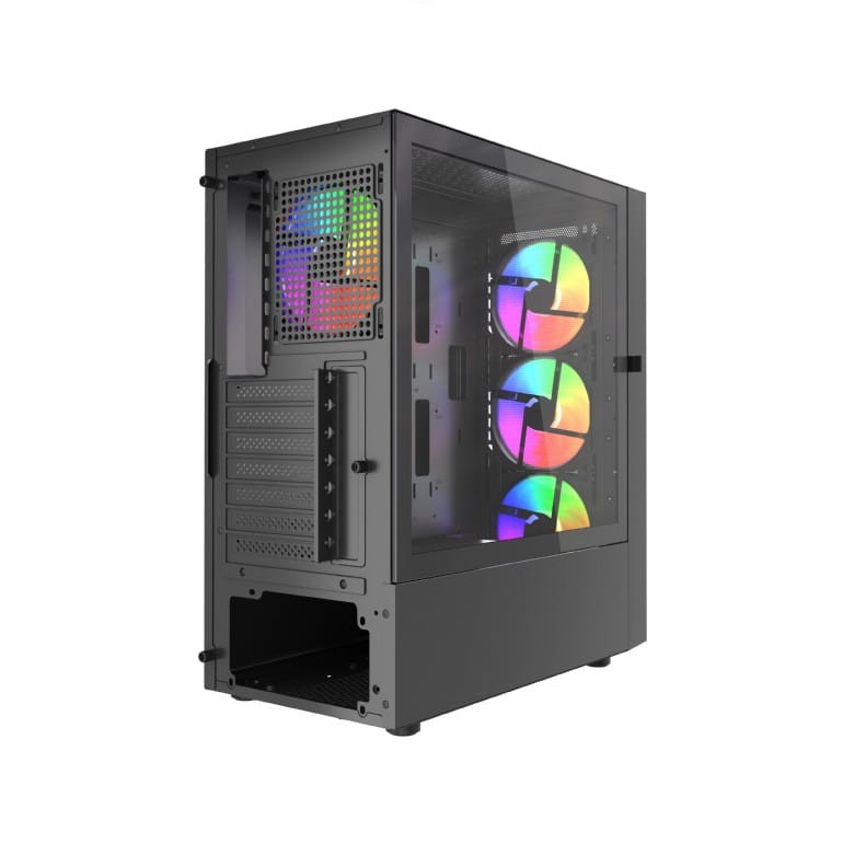- Panel boczny z hartowanego szkła – Dzięki temu możesz zaprezentować wnętrze swojego PC, w tym efekty świetlne czy kolorowe podświetlenie wentylatorów.