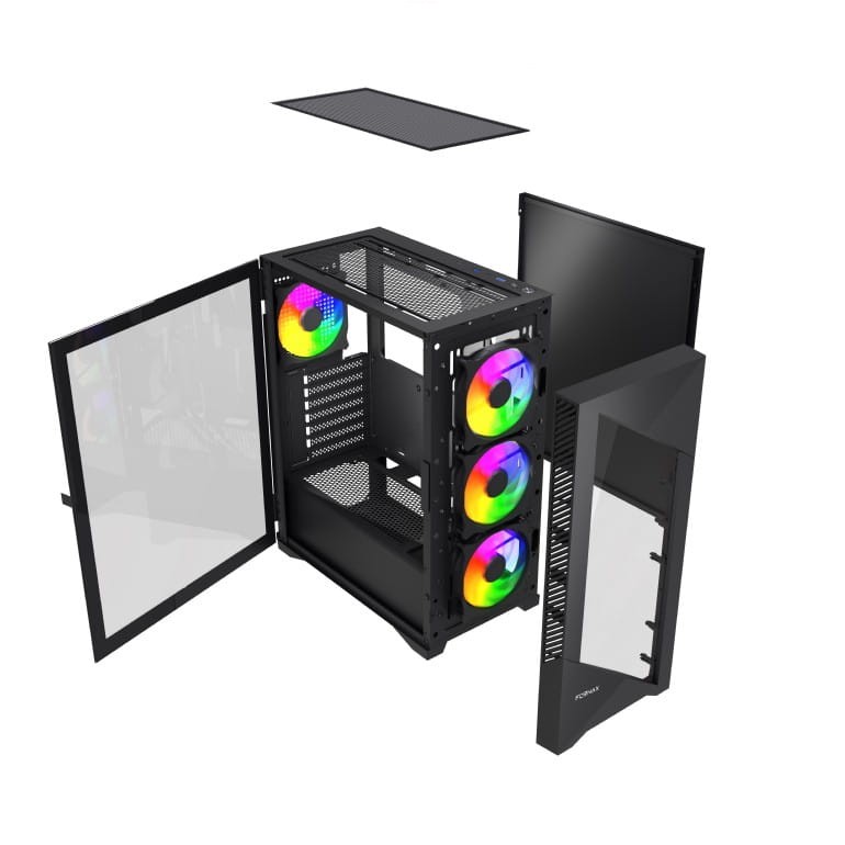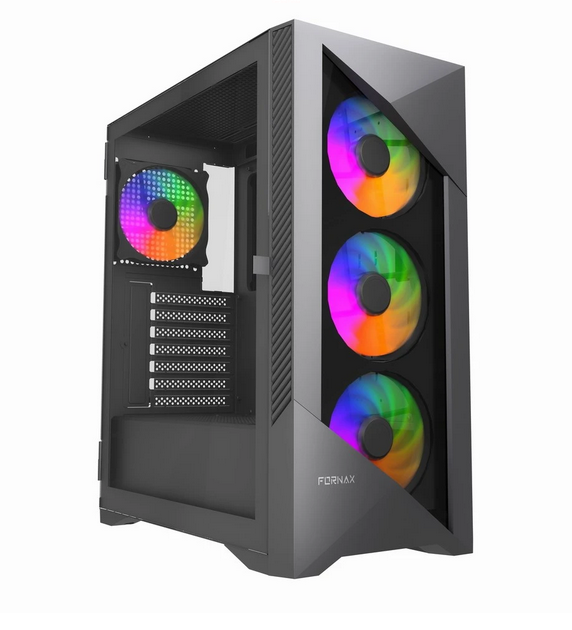 Fornax 9000ARGB to obudowa w standardzie ATX, która pomieści płyty główne ATX, micro-ATX oraz mini-ITX, oferując pełną przestronność do montażu i rozbudowy systemu komputerowego.