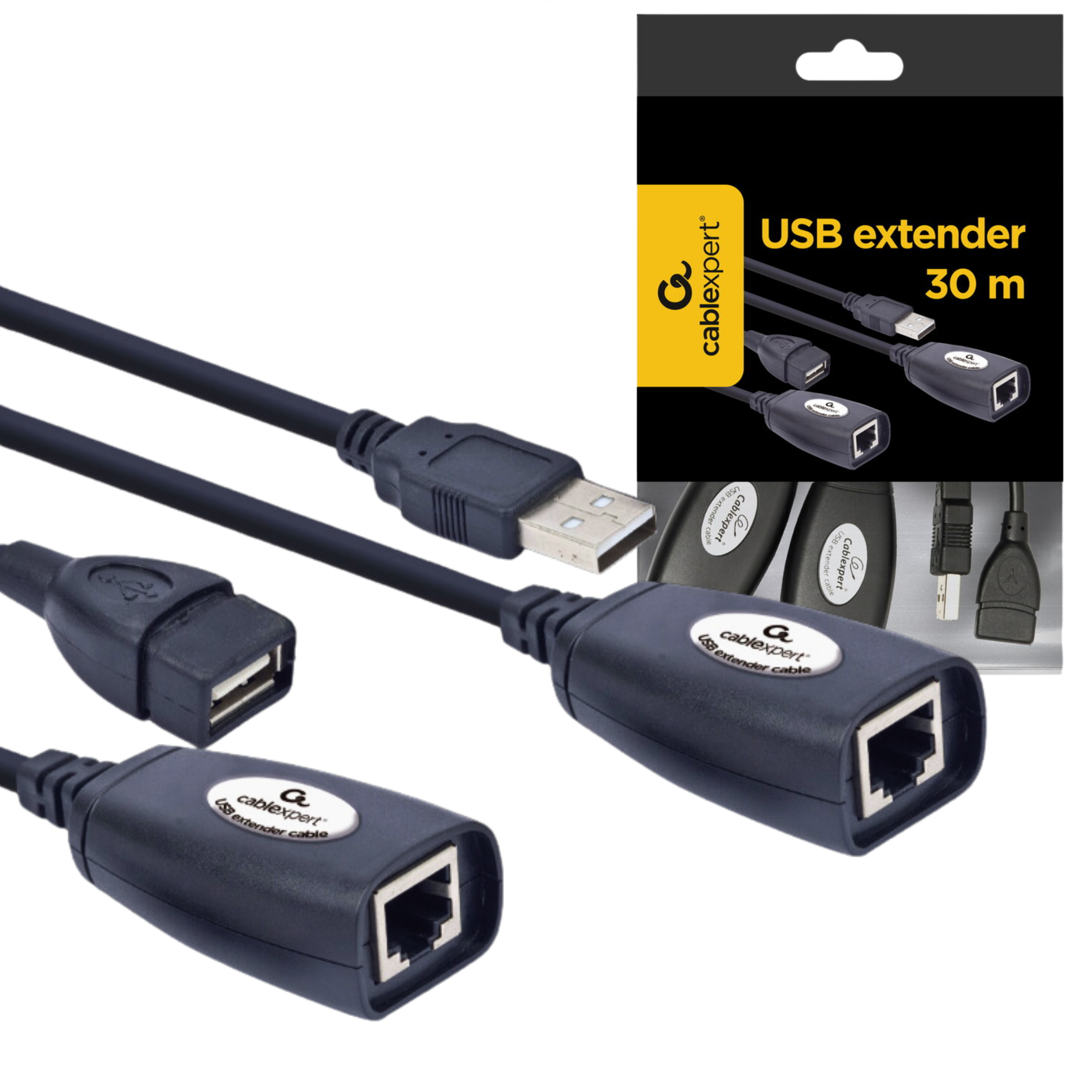 Przedłużacz aktywny USB 2.0 po skrętce LAN CAT5 5e 6 do 30M Cablexpert