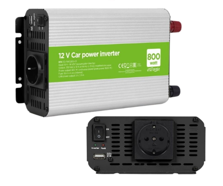 ✔️ Przetwornica samochodowa o mocy 800 W z pojedynczym gniazdem
