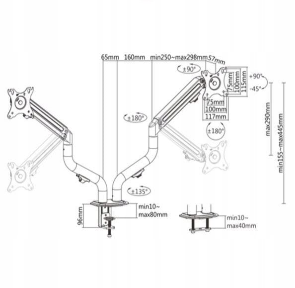 - Ramiona obracają się, wysuwają i chowają, przechylają, aby jak najlepiej ustawić kąt ekranu, umożliwiają obracanie wyświetlaczy z trybu poziomego do pionowego itp.