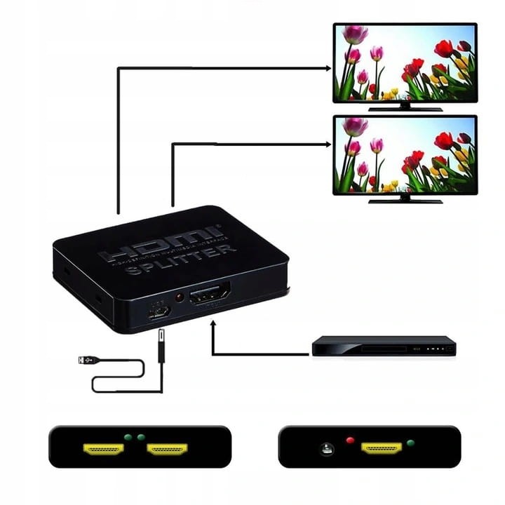 - Wysyła jeden sygnał HDMI do dwóch odbiorników takich jak: monitor, projektor, telewizor