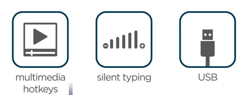 Klawiatura KB-UM-107 wyposażona jest w 13 praktycznych klawiszy multimedialnych, które umożliwiają szybki dostęp do przeglądarki internetowej oraz kontroli nad odtwarzaniem muzyki.