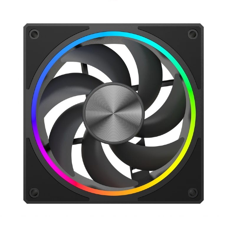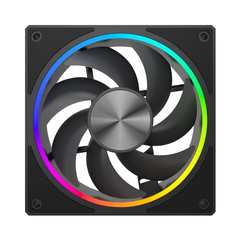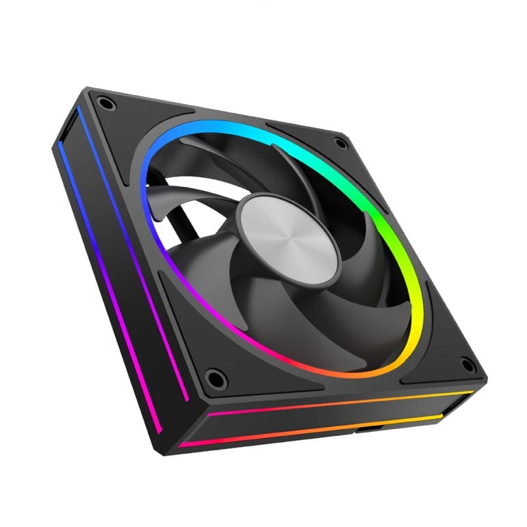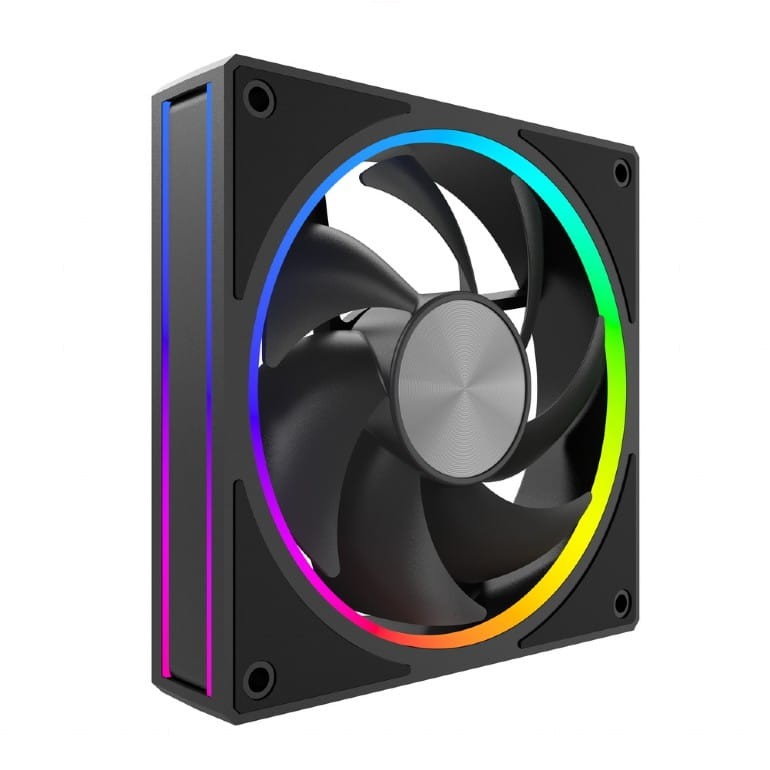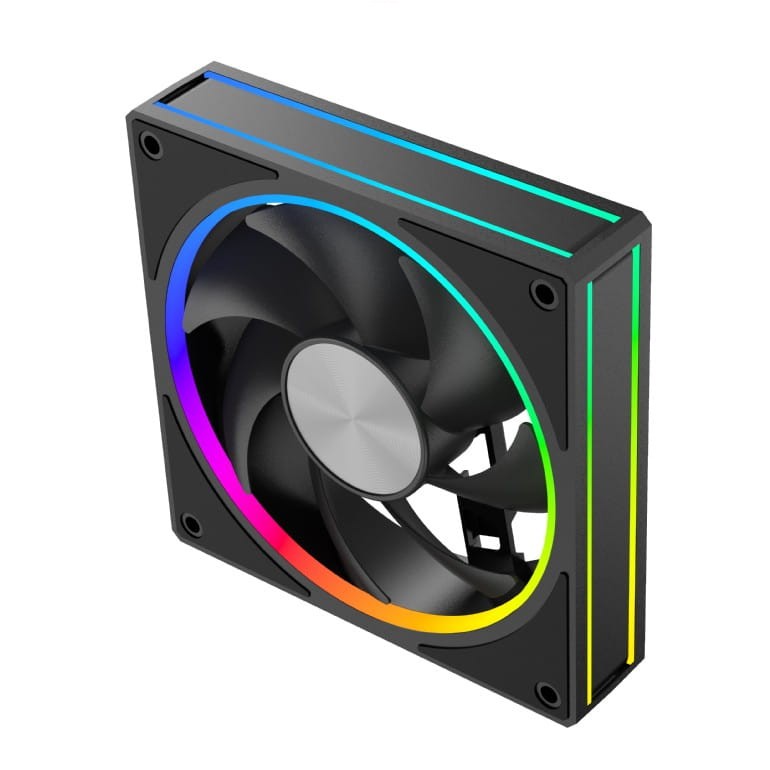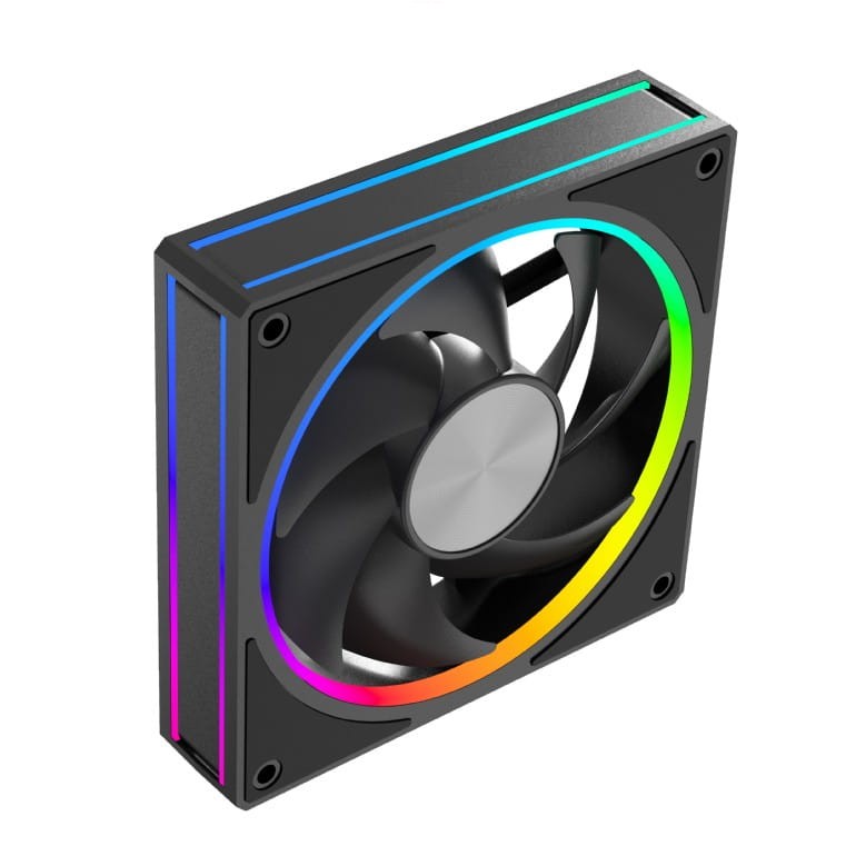 Zintegrowane w formie pierścienia RGB wokół wentylatora, 16 jasnych i energooszczędnych diod LED ARGB umożliwia pełną personalizację efektów świetlnych. Dzięki kompatybilności ze standardami ARGB (adresowalne RGB) 5V, wentylator bezproblemowo współpracuje z popularnymi systemami oświetlenia płyt głównych (ASUS Aura Sync, MSI Mystic Light, Gigabyte RGB Fusion, ASRock Polychrome).