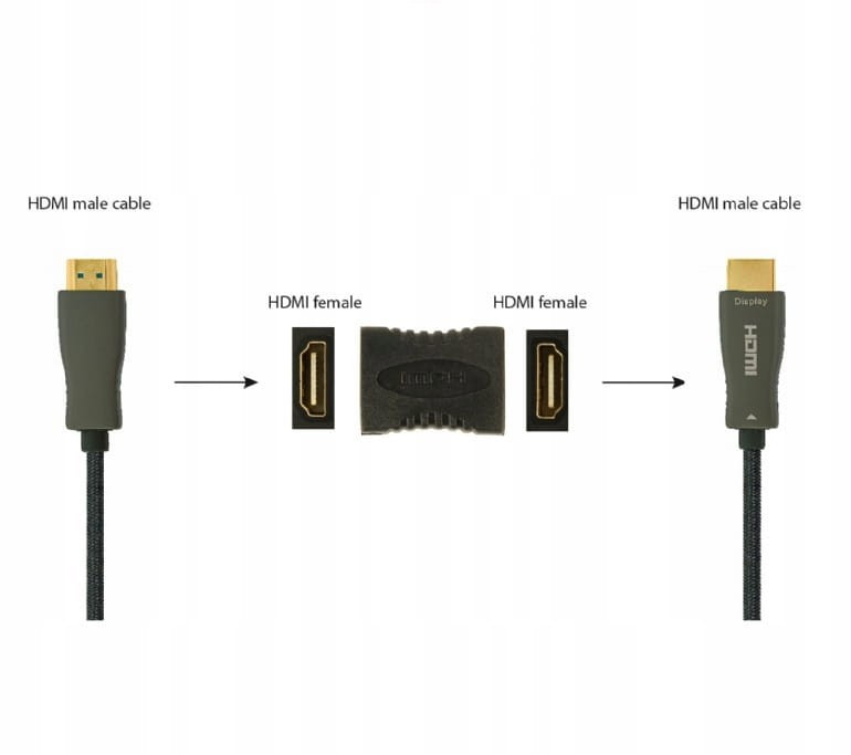 ⚡ Zmienia męską końcówkę kabla HDMI na gniazdo żeńskie.